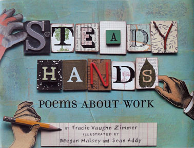 In this collection of free-verse poems, inspired by Walt Whitman's I Hear America Singing, Tracie Vaughn Zimmer celebrates workers and the doing of work. The poems are short and direct, with strong, fresh images, and readers can easily imagine themselves in the roles she portrays: welder, librarian, surgeon, retail clerk, camp counselor. The illustrations are as original as the text---amazing multilayered collages made of paper, found objects, ephemera, photographs, dried flowers, and archival images. Steady Hands is sure to inspire discussion, creative writing, art projects, and new answers to the old question: What do you want to do when you grow up?